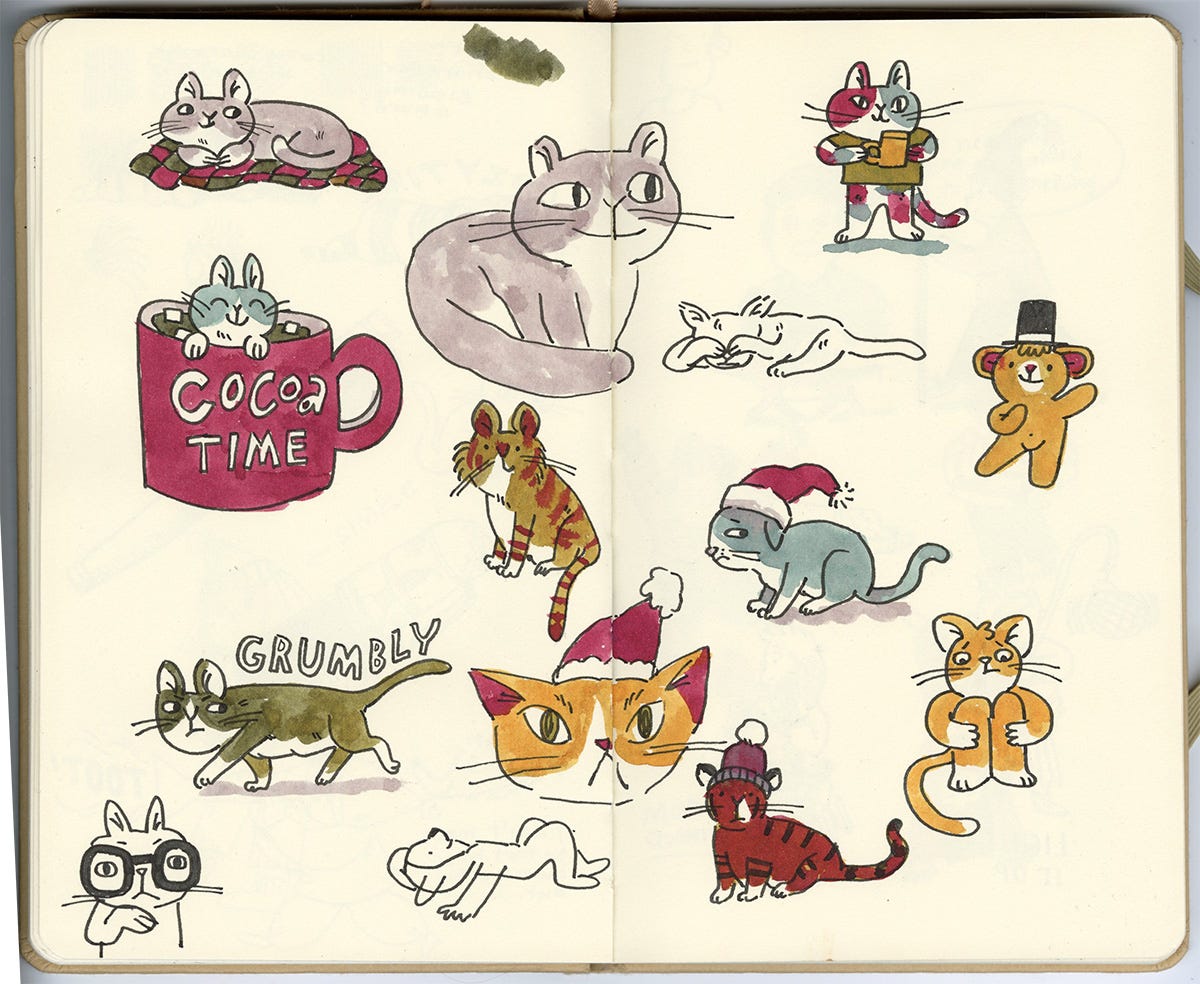 Also, no, I don’t know why I am obsessed with drawing birds and cats right now. I just am. Which is funny, because I don’t really like birds OR cats. I mean, I like birds from afar, where they can’t swoop at me or poop on me and cats where they can’t swipe at me, or touch me. I like to watch both of these creatures, I like to draw both of these creatures, but I do not want either of these creatures in my house.