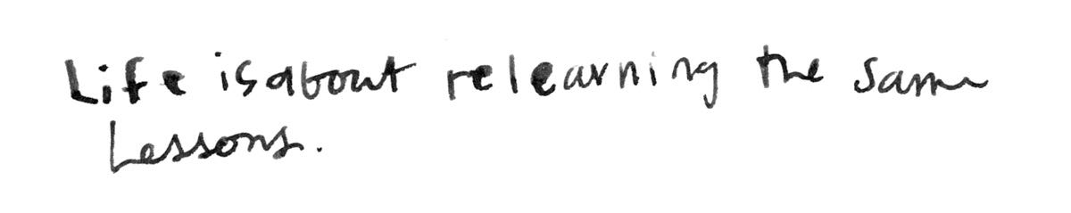 LOVE the 'Life is about relearning the same lessons'