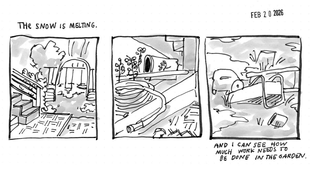 This is just a quick scribble, barely a capture of anything at all, but now it’s part of a series and maybe I will revisit it again next February. And now I have an idea that didn’t exist at the beginning of this newsletter.